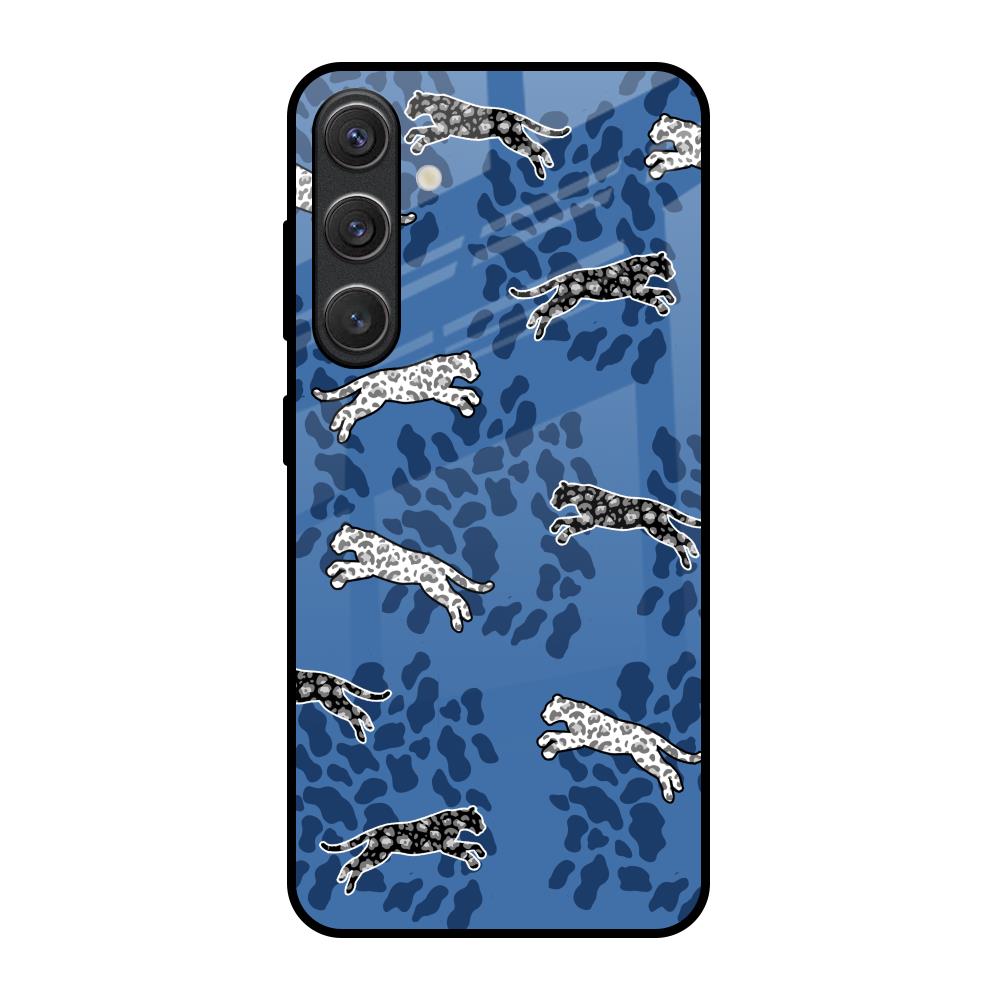 Blue Cheetah Glass Case for Samsung Galaxy S25 5G