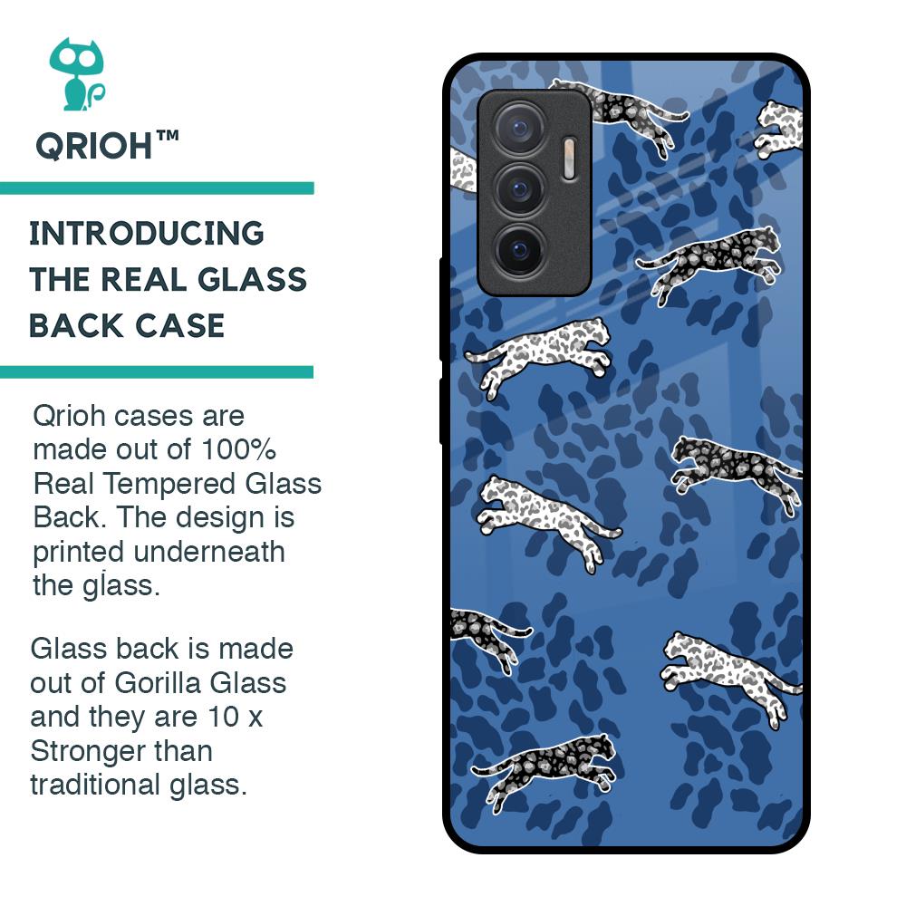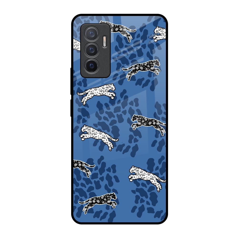 Blue Cheetah Glass Case for Vivo V23e 5G