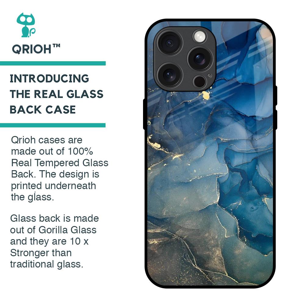 Blue Cool Marble Glass Case for iPhone 15 Pro Max