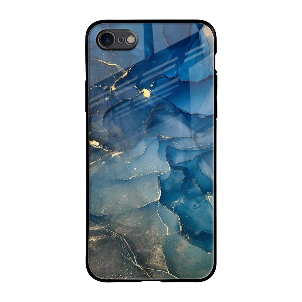 Blue Cool Marble Glass Case for iPhone SE 2020