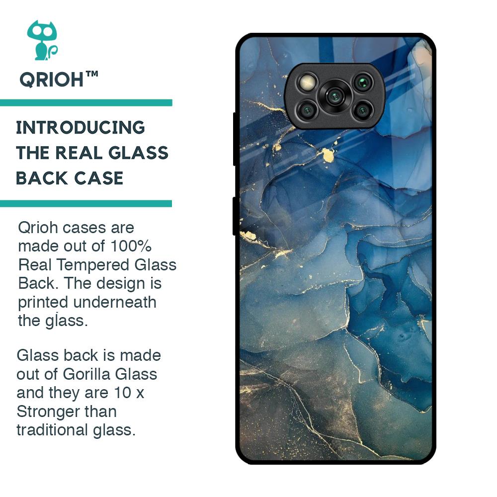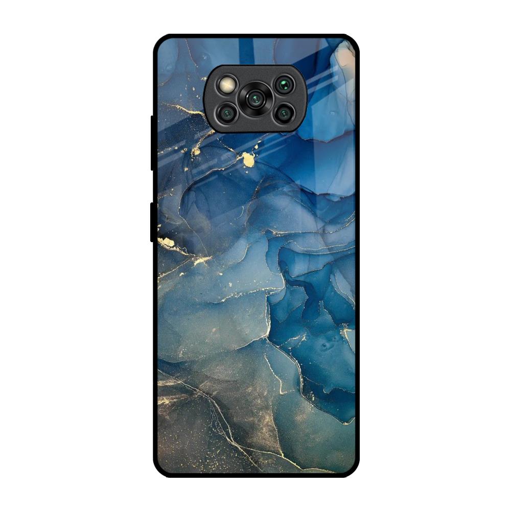 Blue Cool Marble Glass Case for Poco X3 Pro