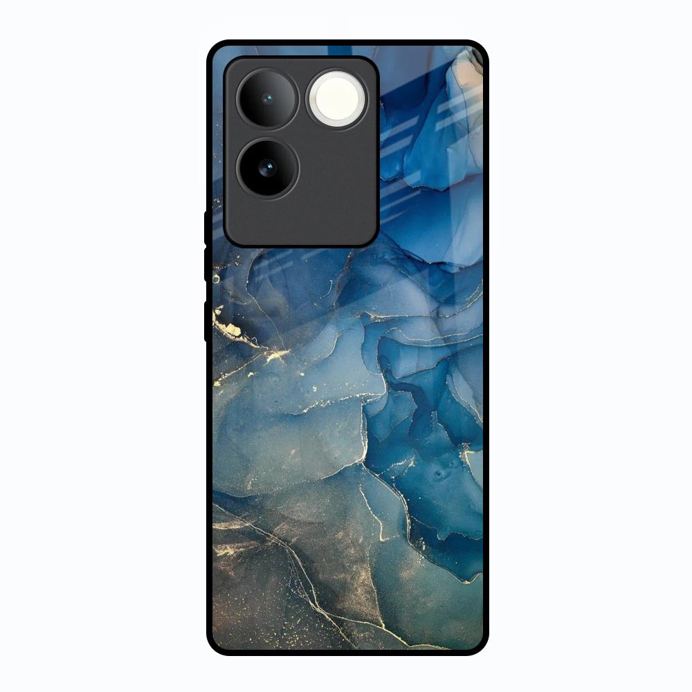 Blue Cool Marble Glass Case for Vivo T2 Pro 5G