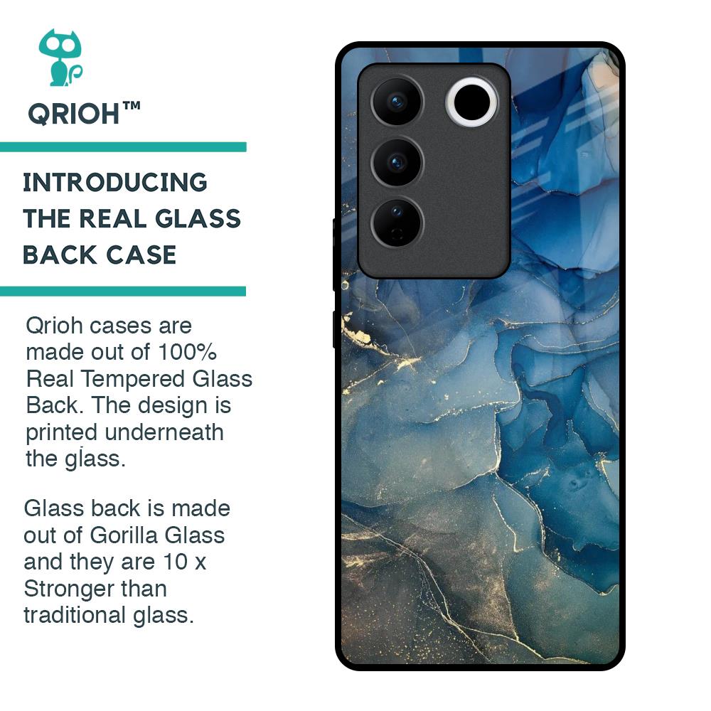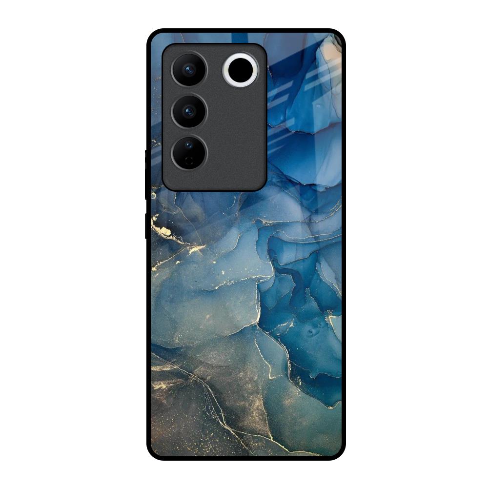 Blue Cool Marble Glass Case for Vivo V27 5G