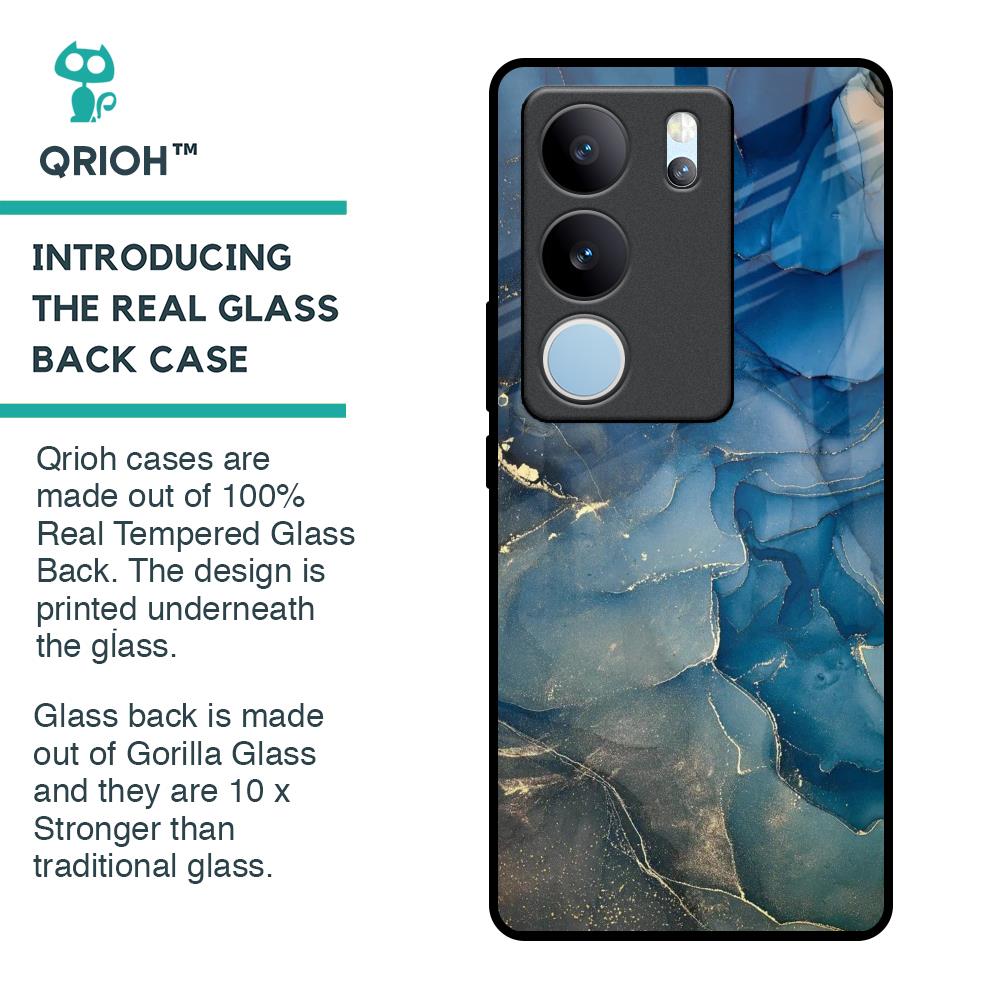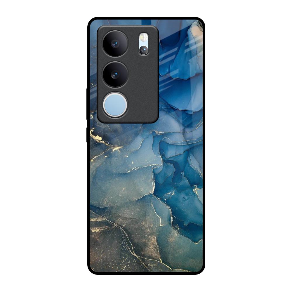 Blue Cool Marble Glass Case for Vivo V29 5G