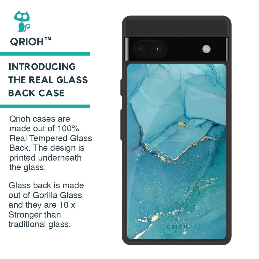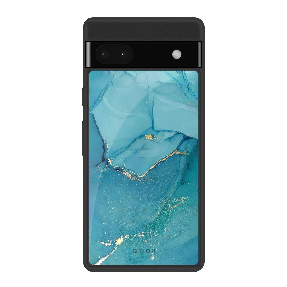 Blue Golden Glitter Glass Case for Google Pixel 6a