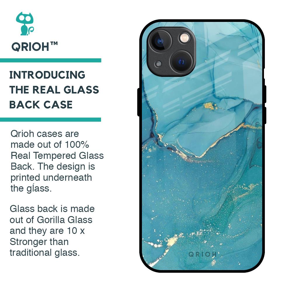Blue Golden Glitter Glass Case for iPhone 13 mini