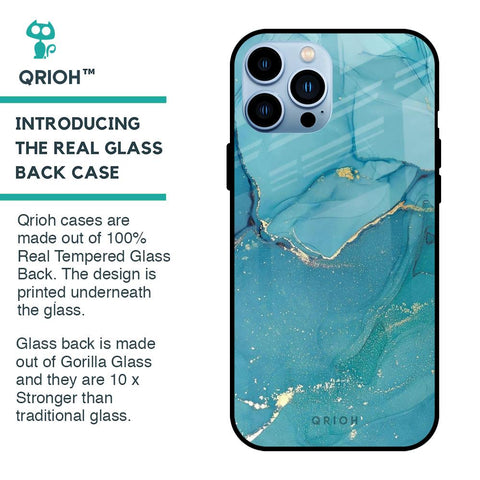 Blue Golden Glitter Glass Case for iPhone 13 Pro Max