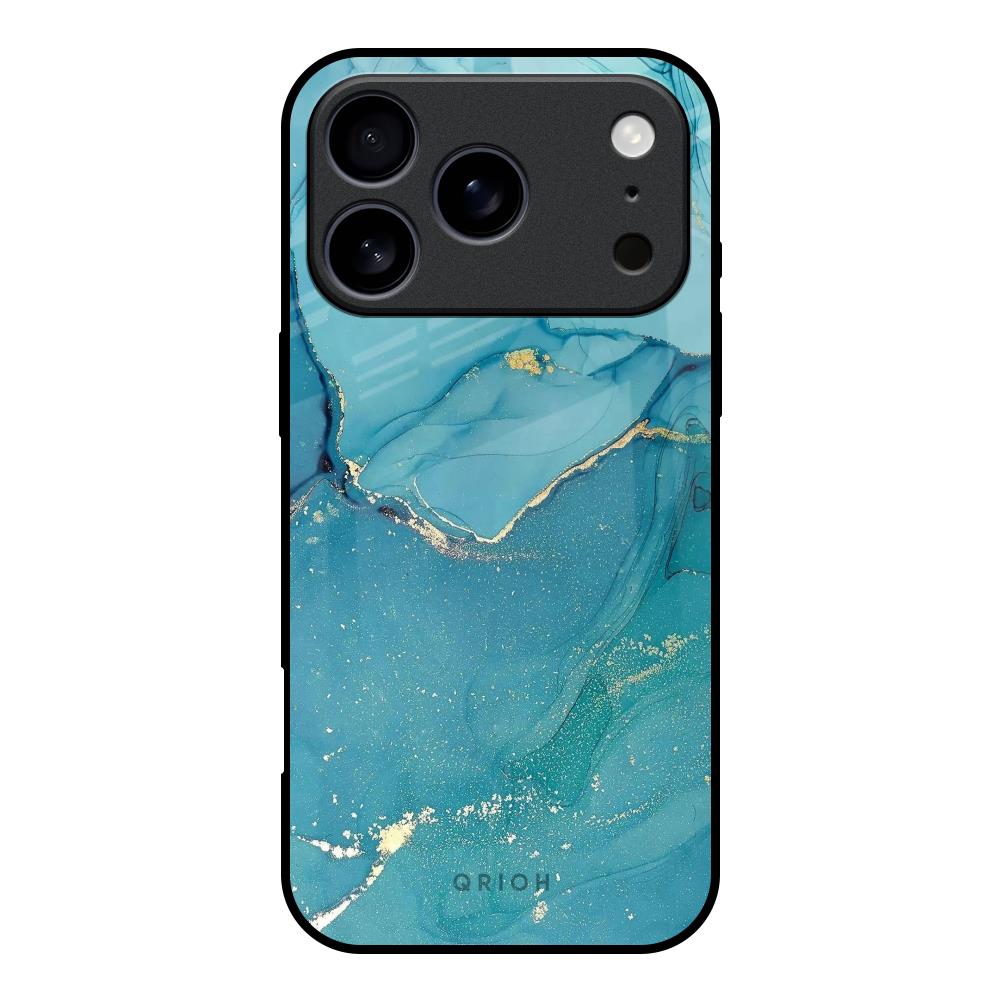 Blue Golden Glitter Glass Case for iPhone 17 Pro