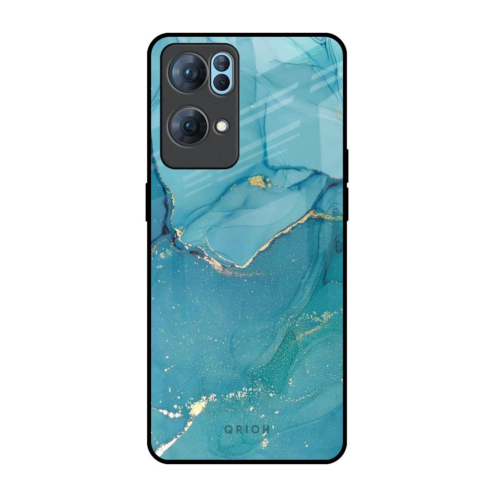 Blue Golden Glitter Glass Case for Oppo Reno7 Pro 5G
