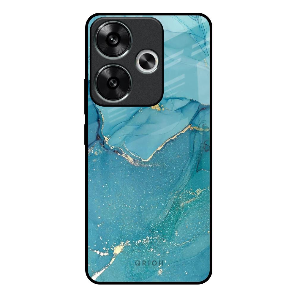 Blue Golden Glitter Glass Case for Poco F6 5G