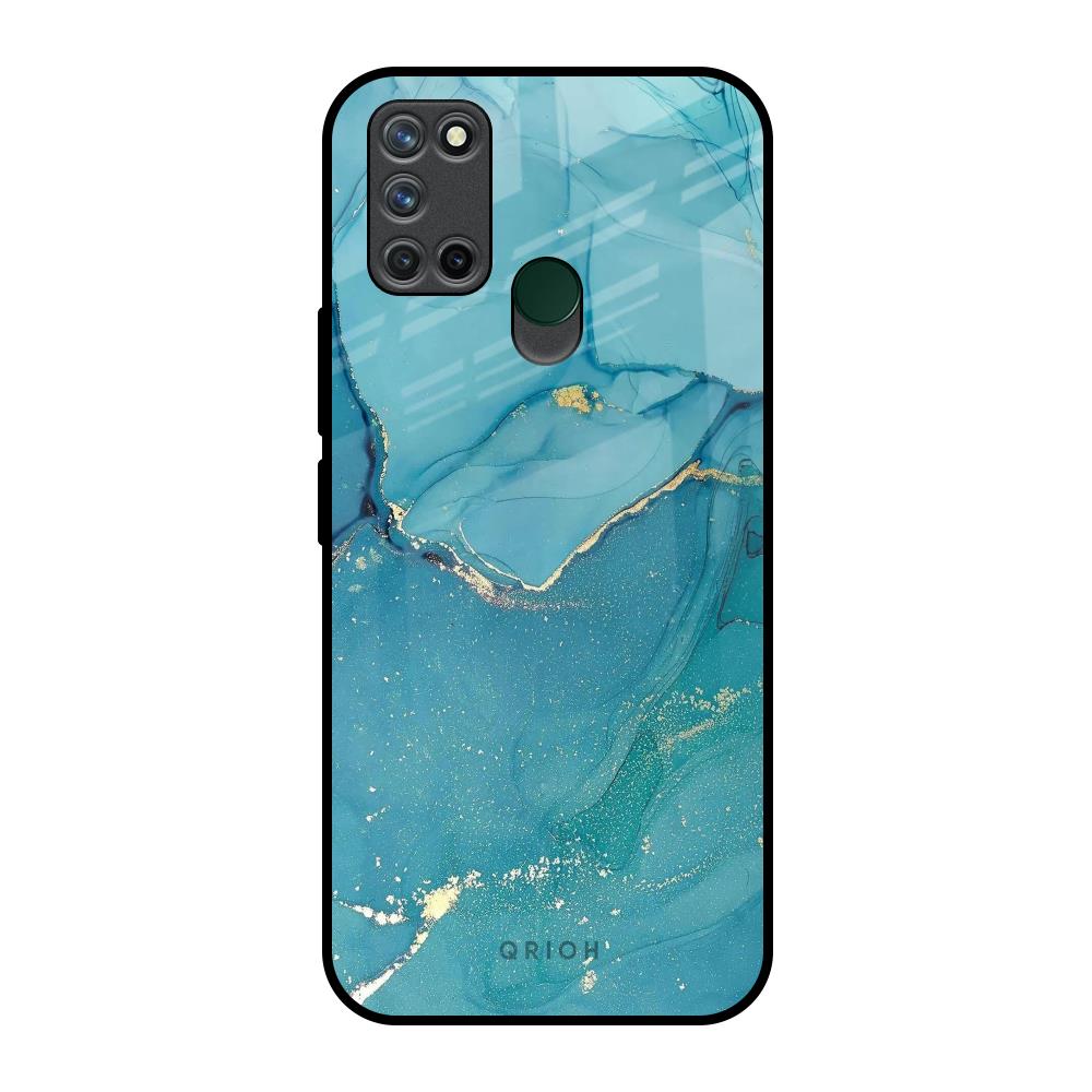 Blue Golden Glitter Glass Case for Realme 7i