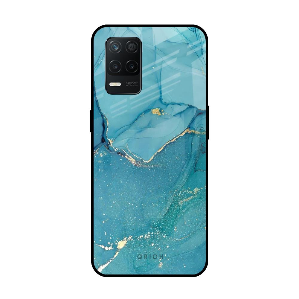 Blue Golden Glitter Glass Case for Realme 8 5G