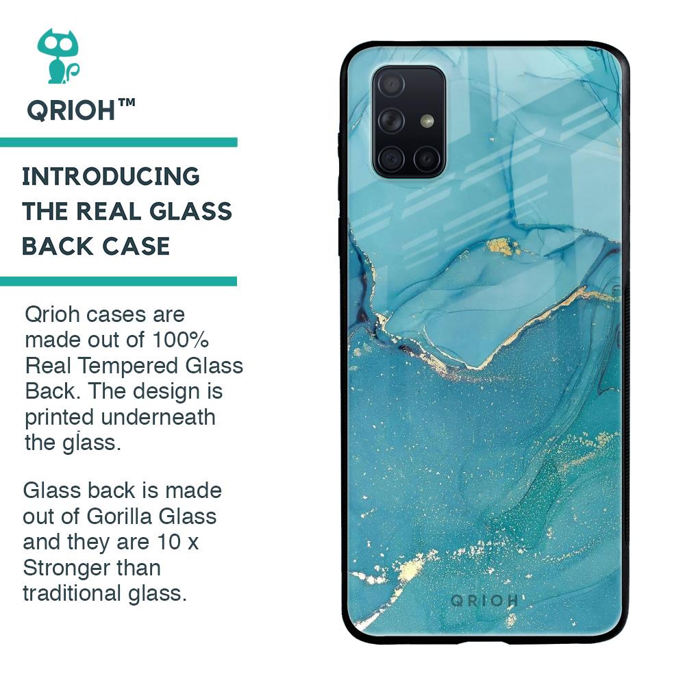 Blue Golden Glitter Glass Case for Samsung Galaxy A71