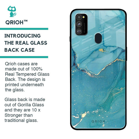 Blue Golden Glitter Glass Case for Samsung Galaxy M30s