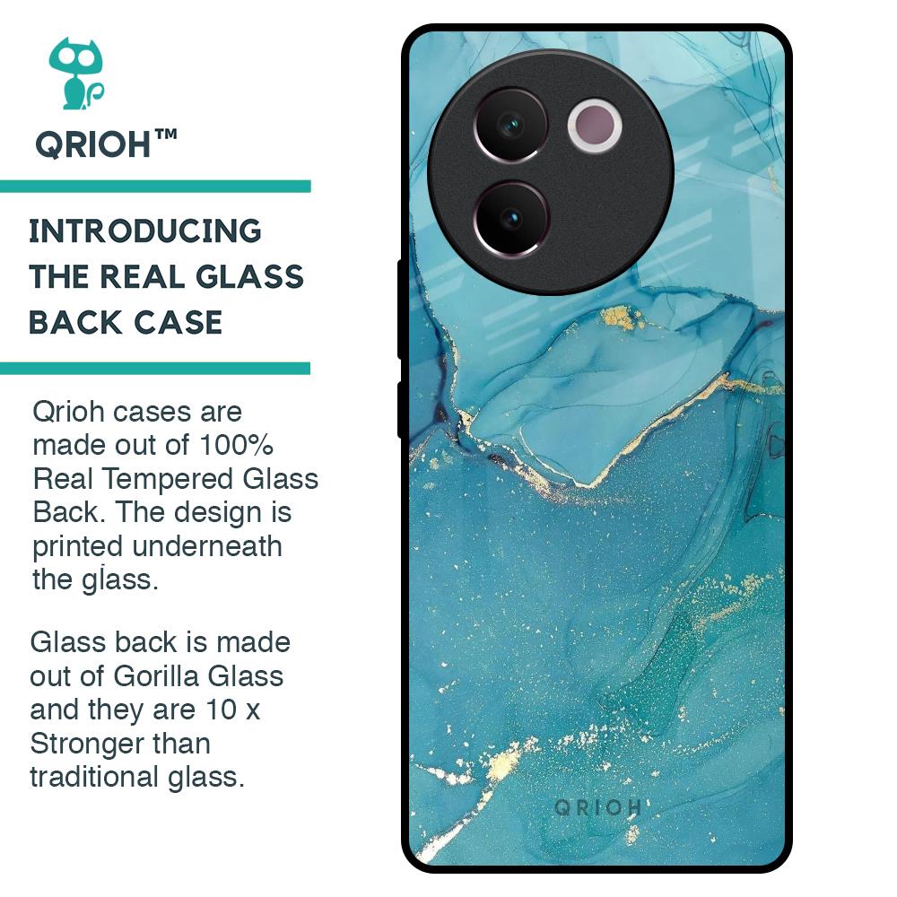 Blue Golden Glitter Glass Case for Vivo V30e