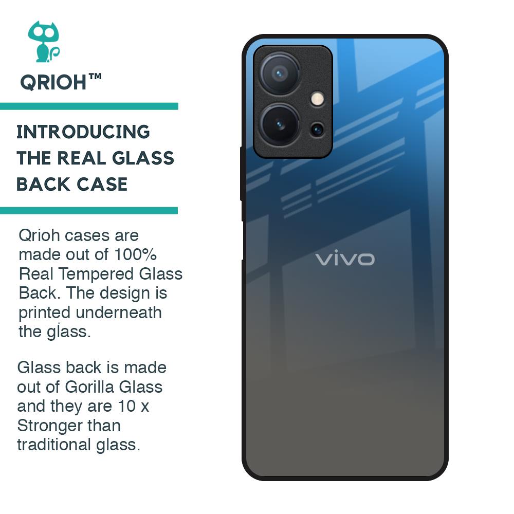 Blue Grey Ombre Glass Case for Vivo T1 5G