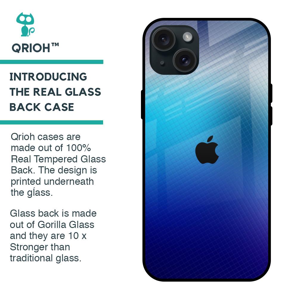 Blue Rhombus Pattern Glass Case for iPhone 15 Plus