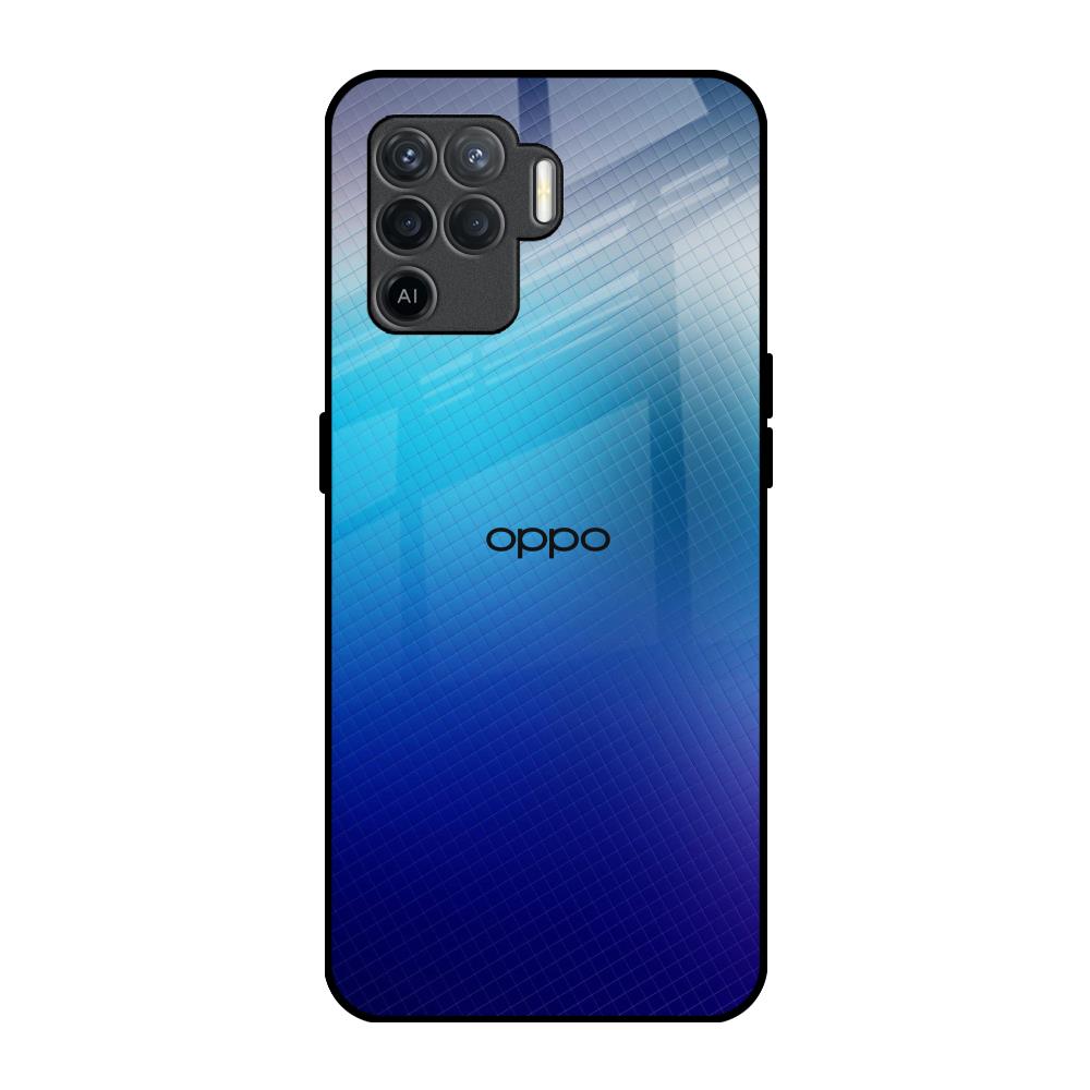 Blue Rhombus Pattern Glass Case for Oppo F19 Pro