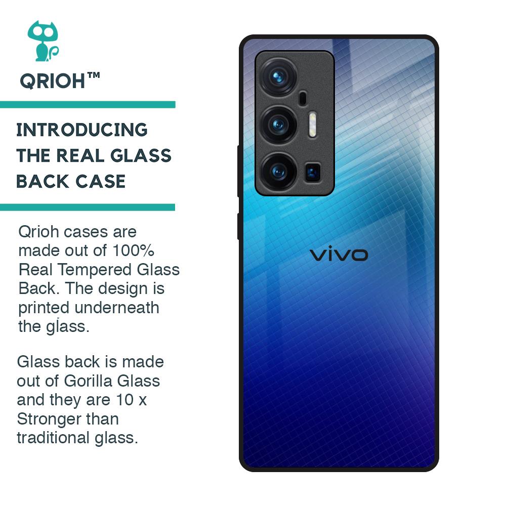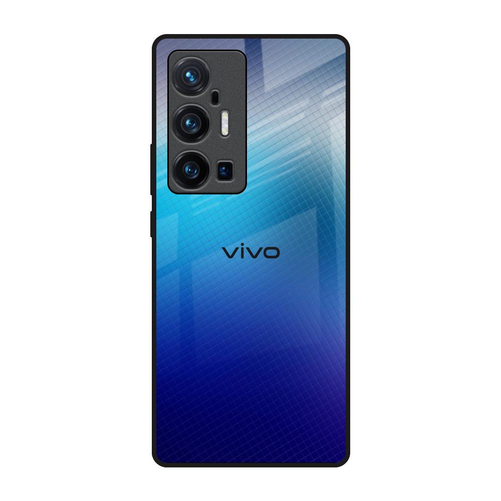 Blue Rhombus Pattern Glass Case for Vivo X70 Pro Plus