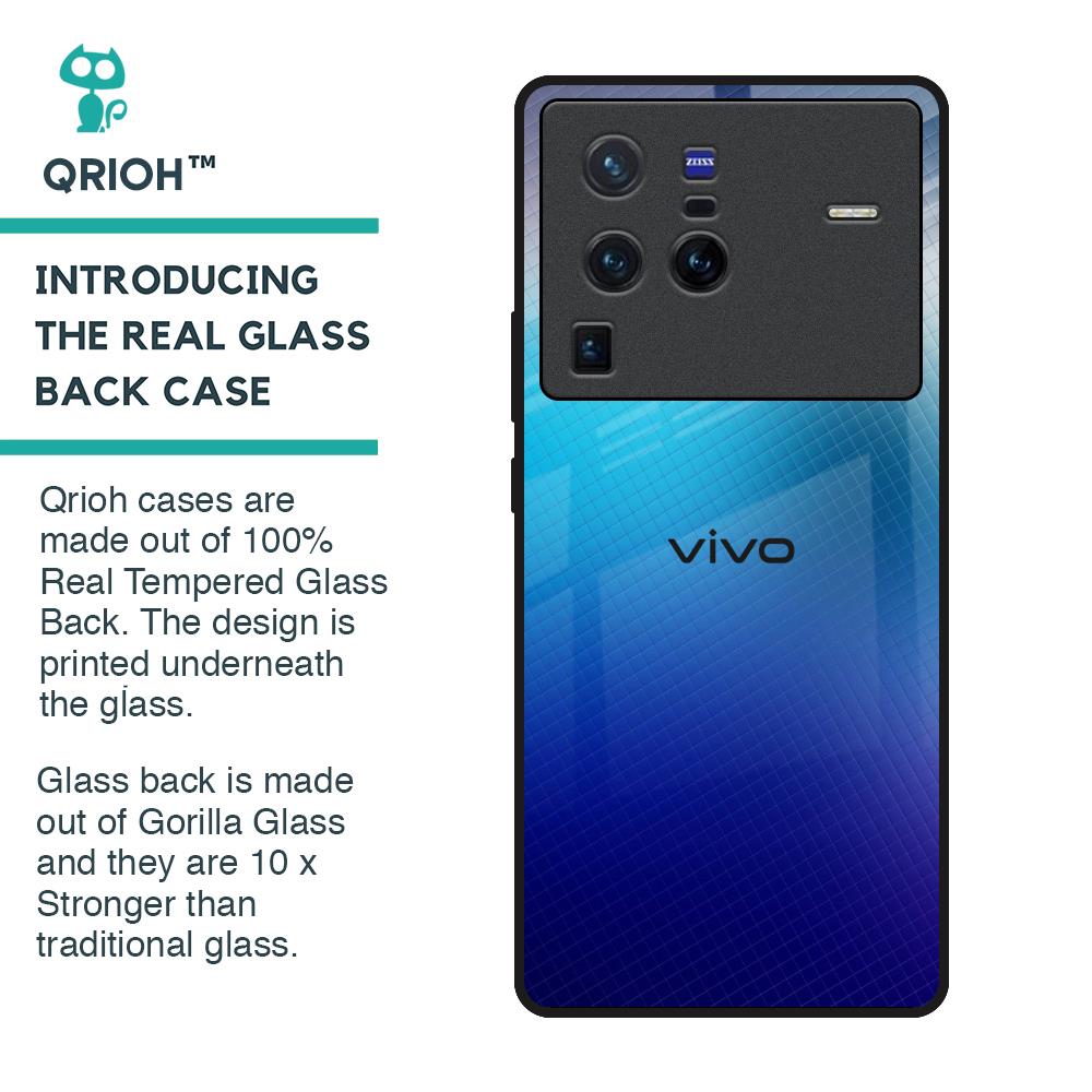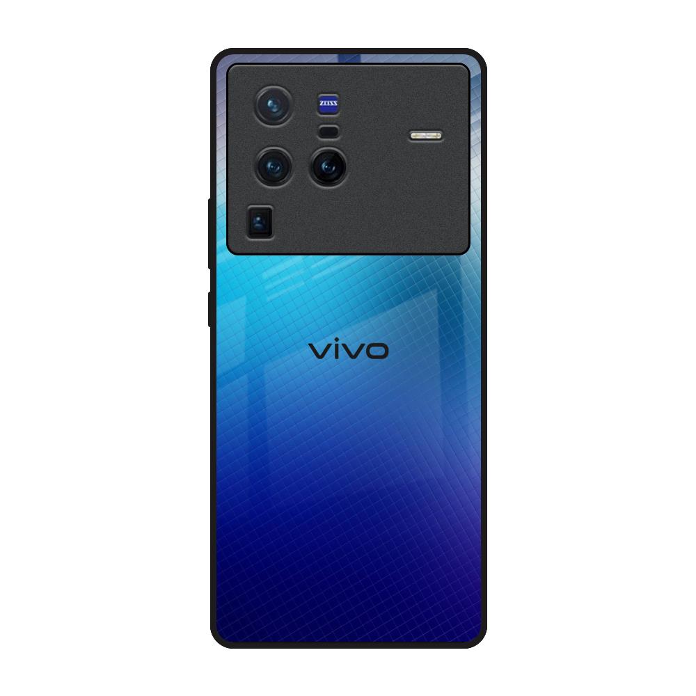 Blue Rhombus Pattern Glass Case for Vivo X80 Pro 5G