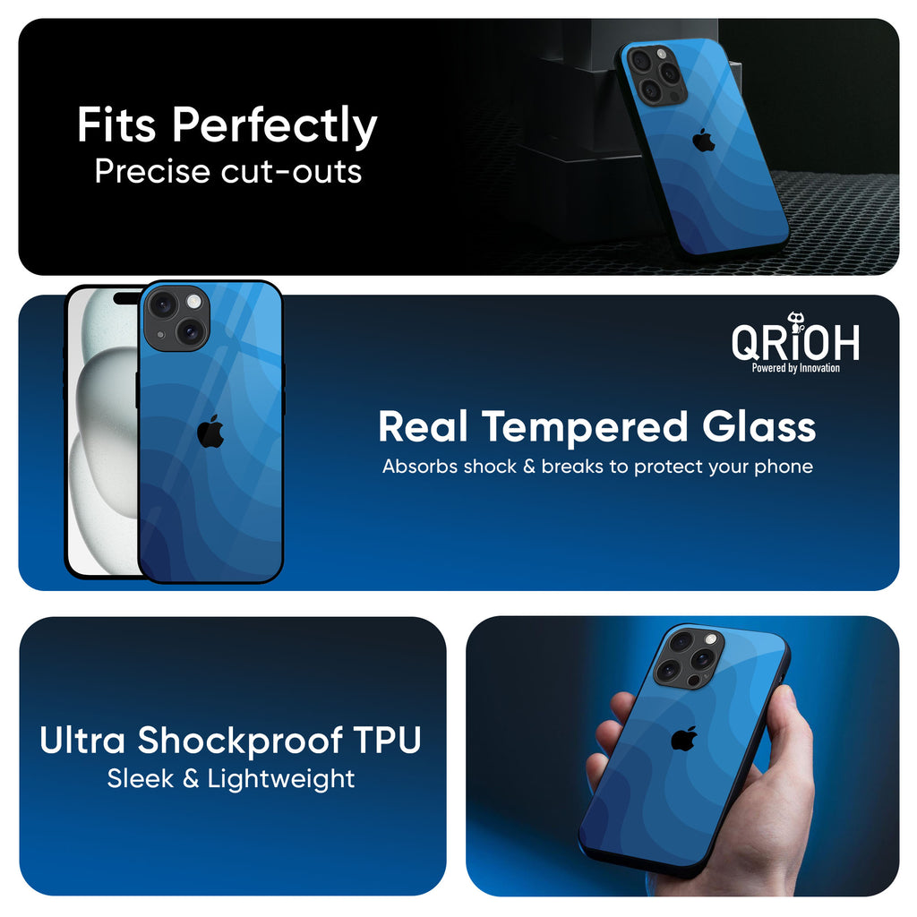 Blue Wave Abstract Glass Case for iPhone 16 Plus