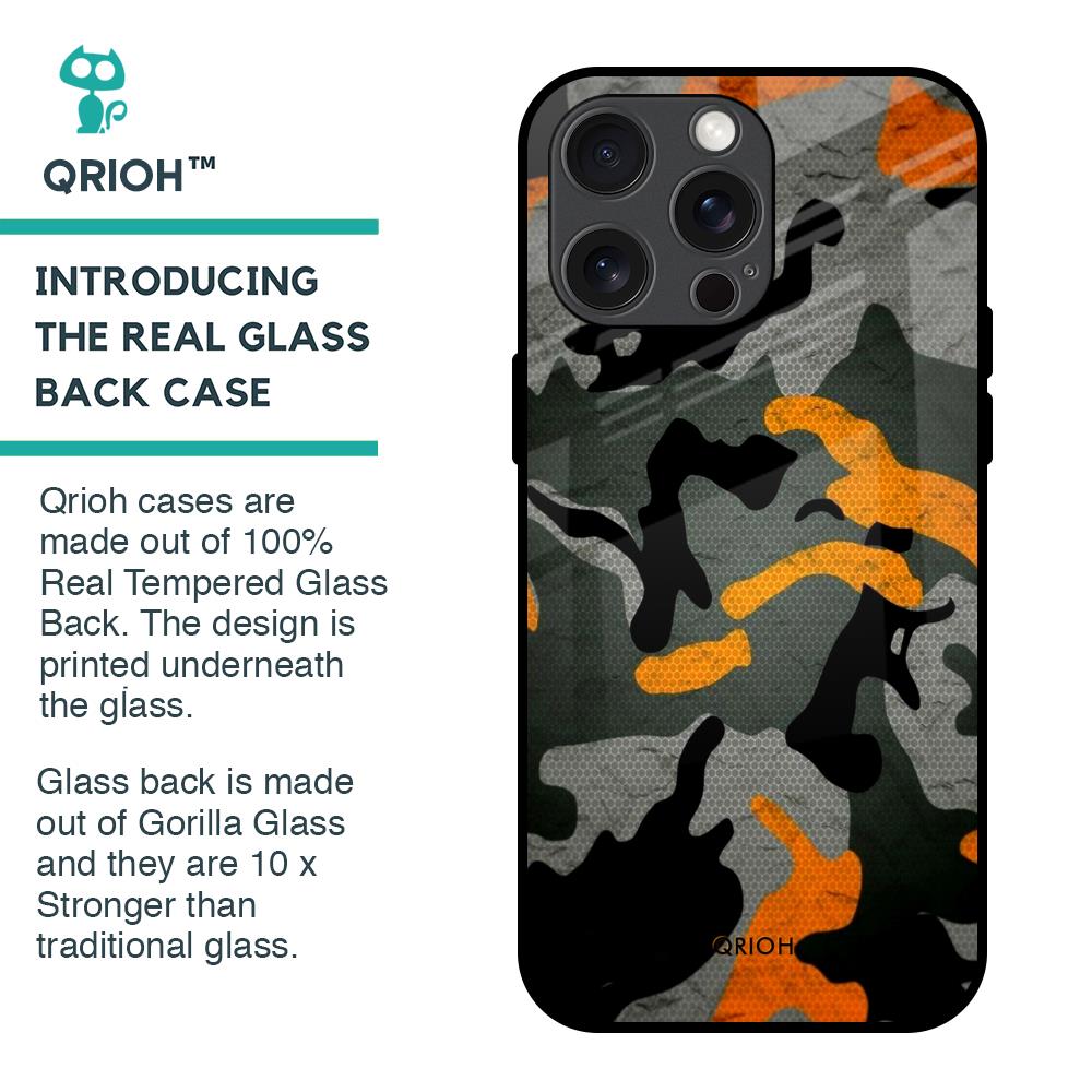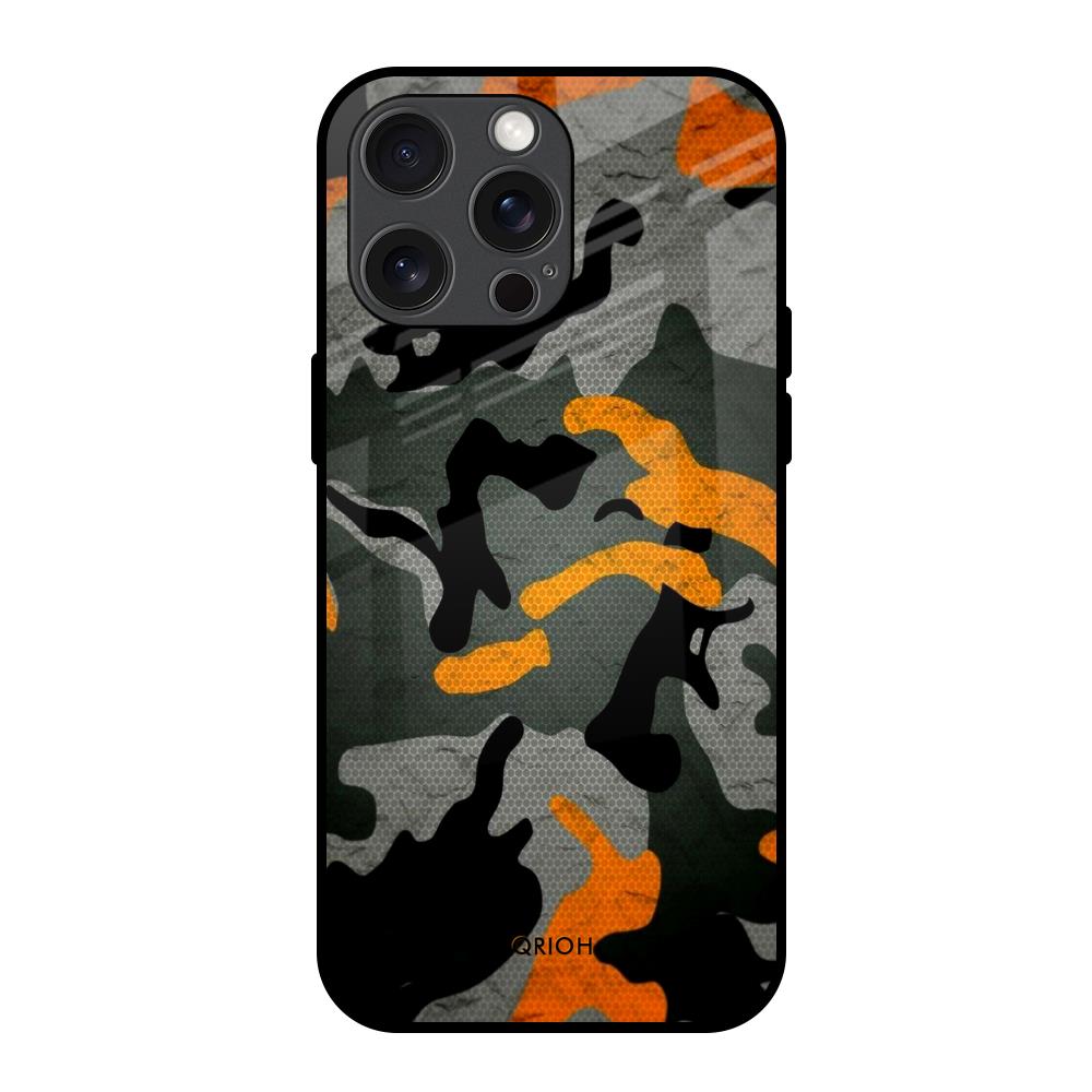 Camouflage Orange Glass Case For iPhone 15 Pro Max