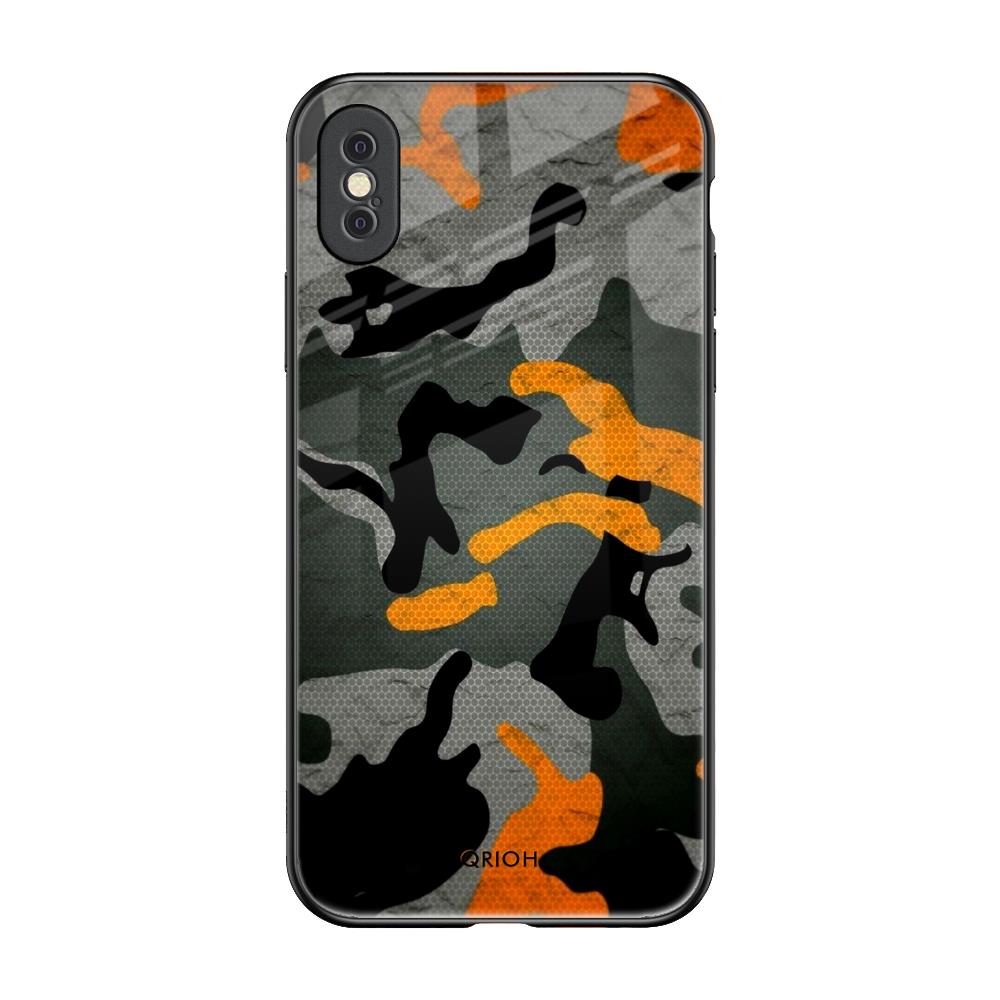 Camouflage Orange Glass Case For iPhone XS Max