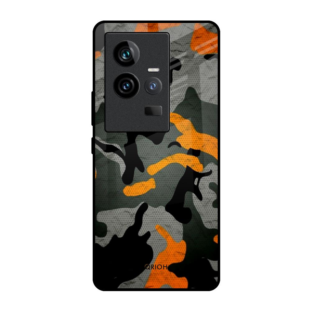 Camouflage Orange Glass Case For iQOO 11