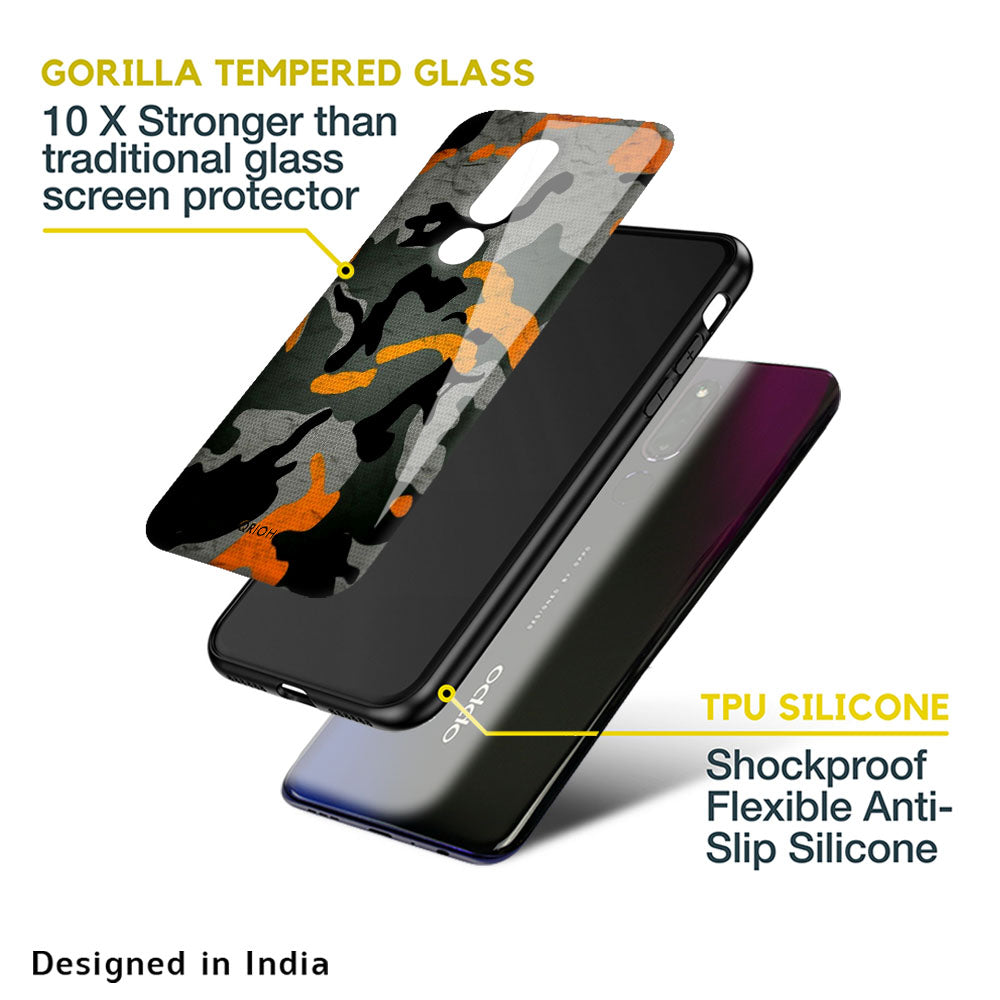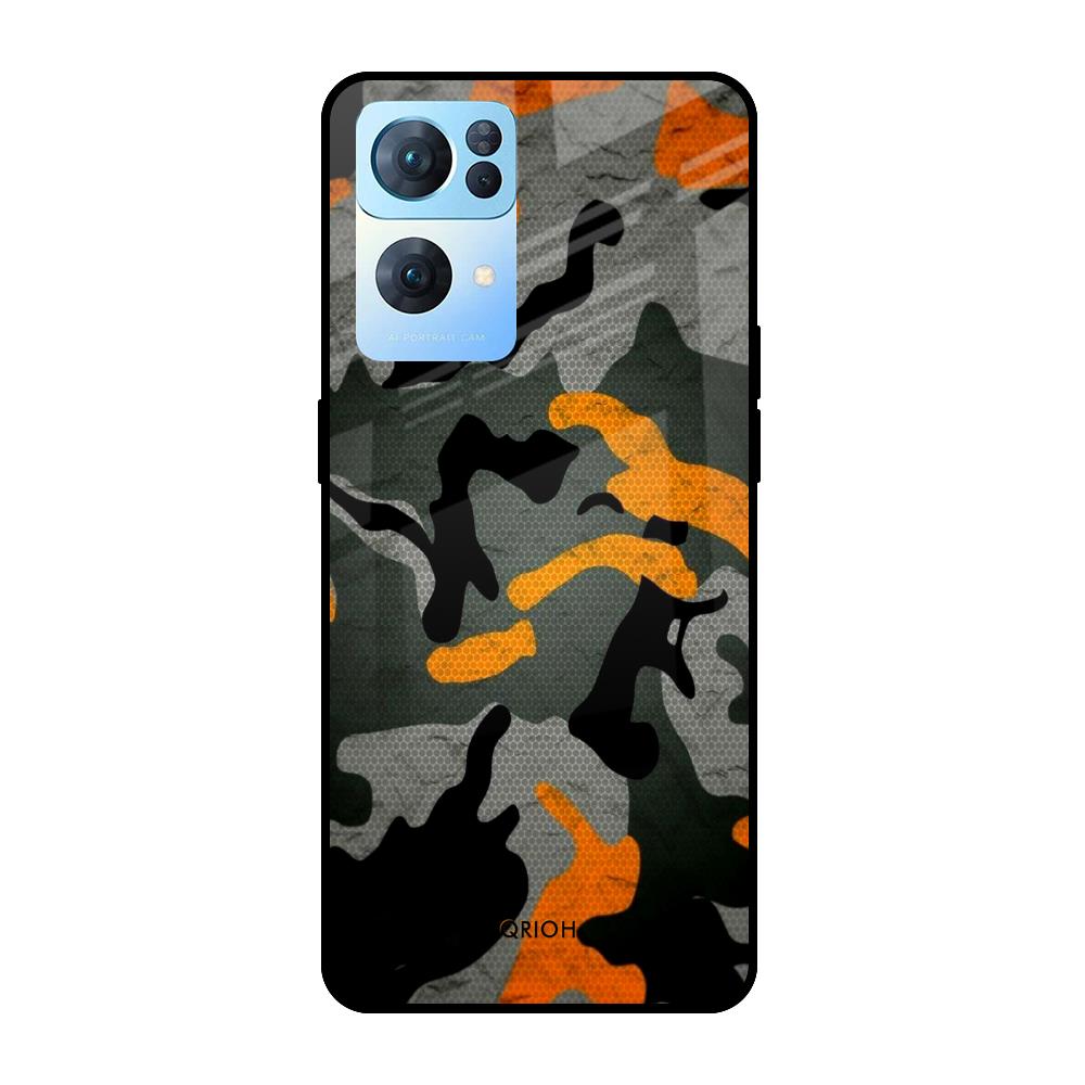 Camouflage Orange Glass Case For Oppo Reno7 Pro 5G