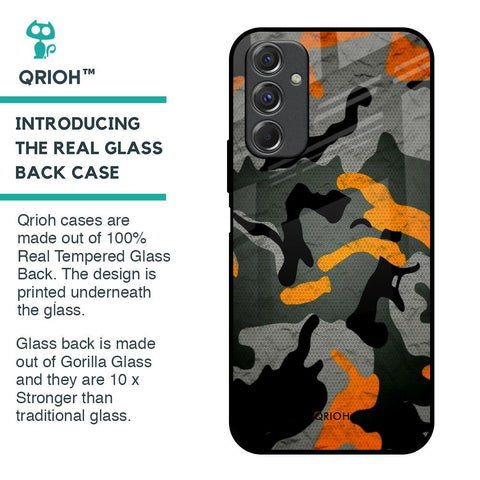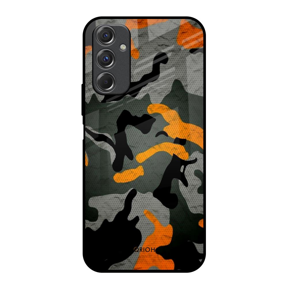 Camouflage Orange Glass Case For Samsung Galaxy F34 5G