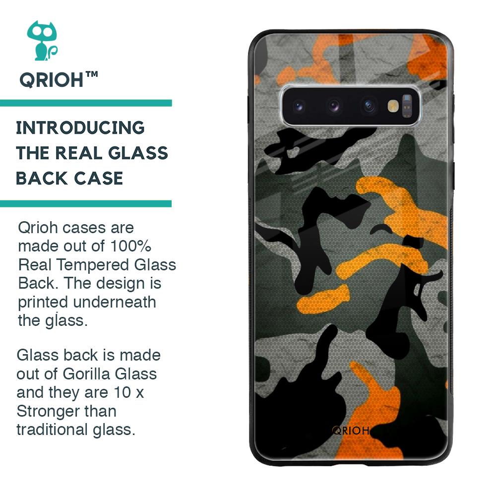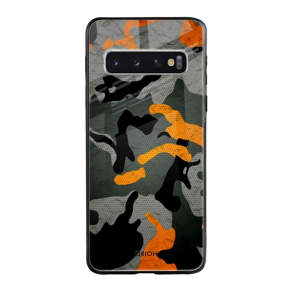 Camouflage Orange Glass Case For Samsung Galaxy S10 Plus