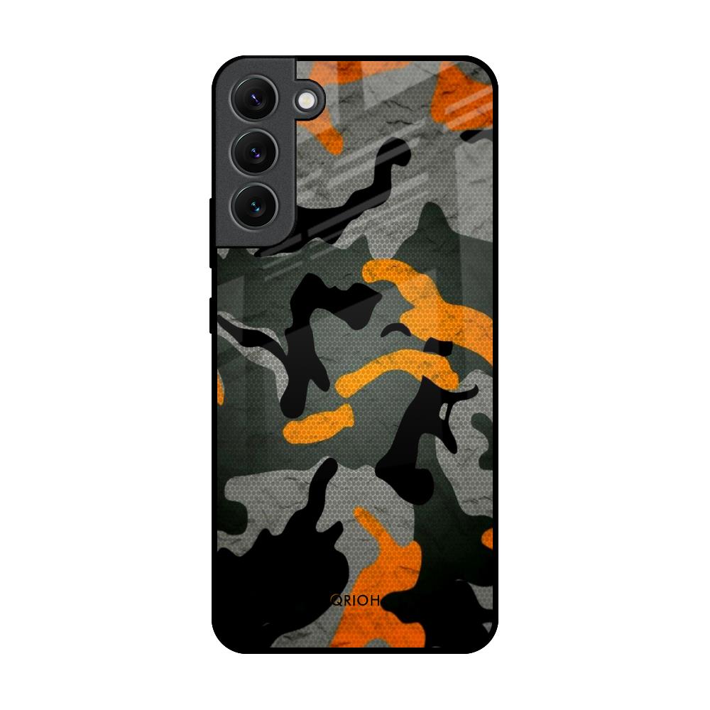 Camouflage Orange Glass Case For Samsung Galaxy S22 Plus 5G