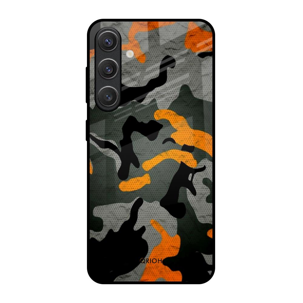 Camouflage Orange Glass Case For Samsung Galaxy S25 5G