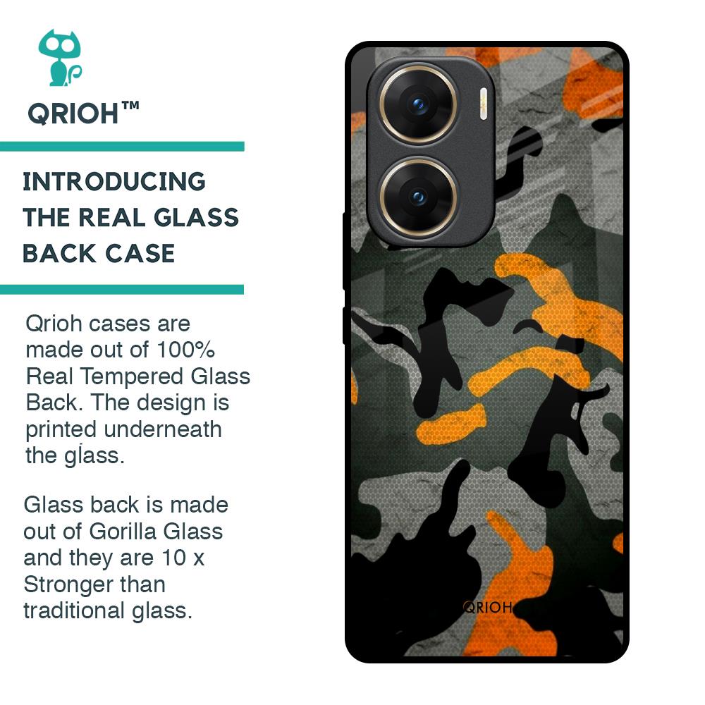 Camouflage Orange Glass Case For Vivo V29e 5G
