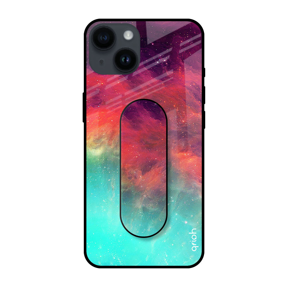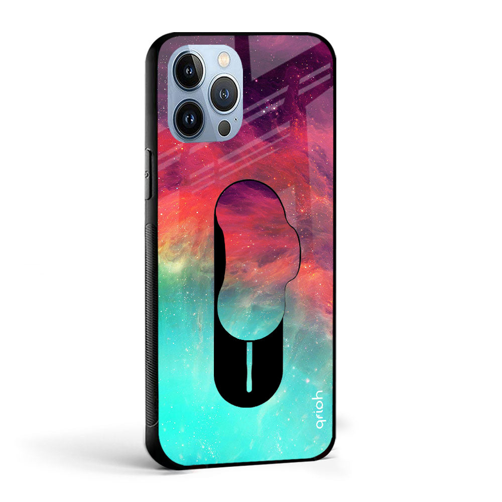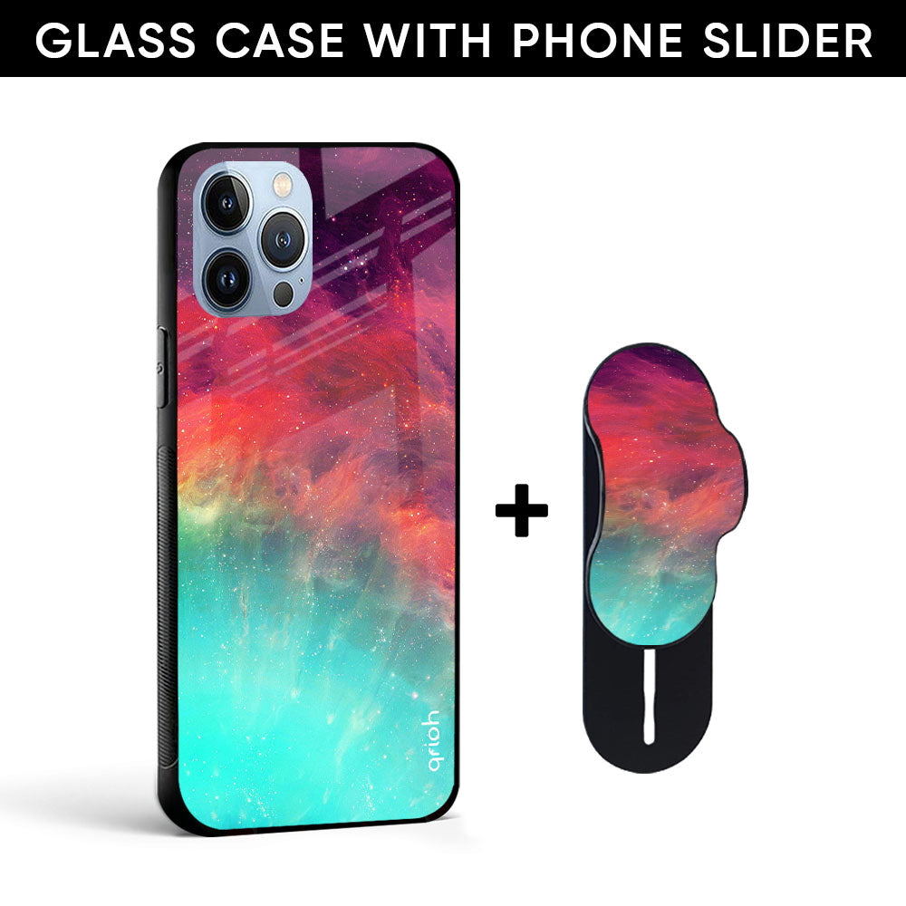 Colorful Aura Glass case with Slider Phone Grip Combo