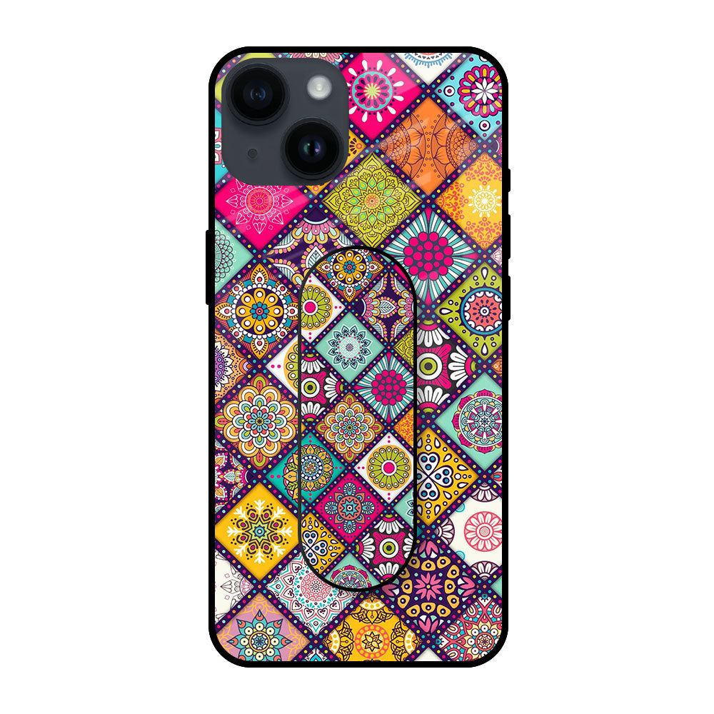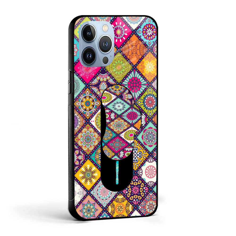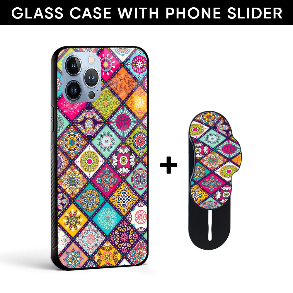 Colorful Mandala Glass case with Slider Phone Grip Combo
