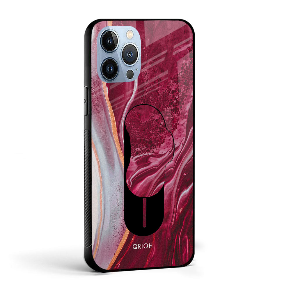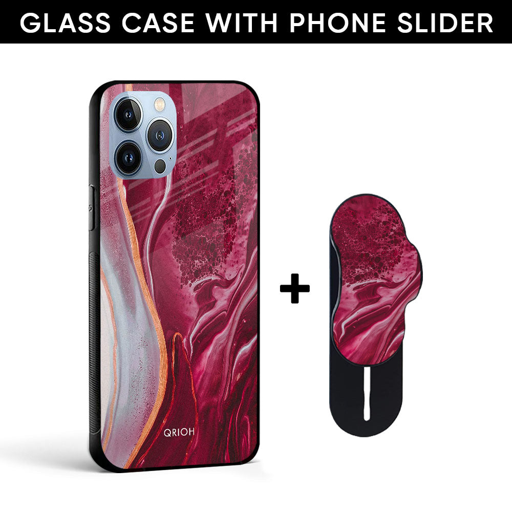 Crimson Ruby Glass case with Slider Phone Grip Combo