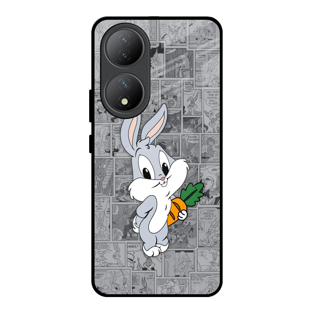 Cute Baby Bunny Glass Case for Vivo Y100 5G