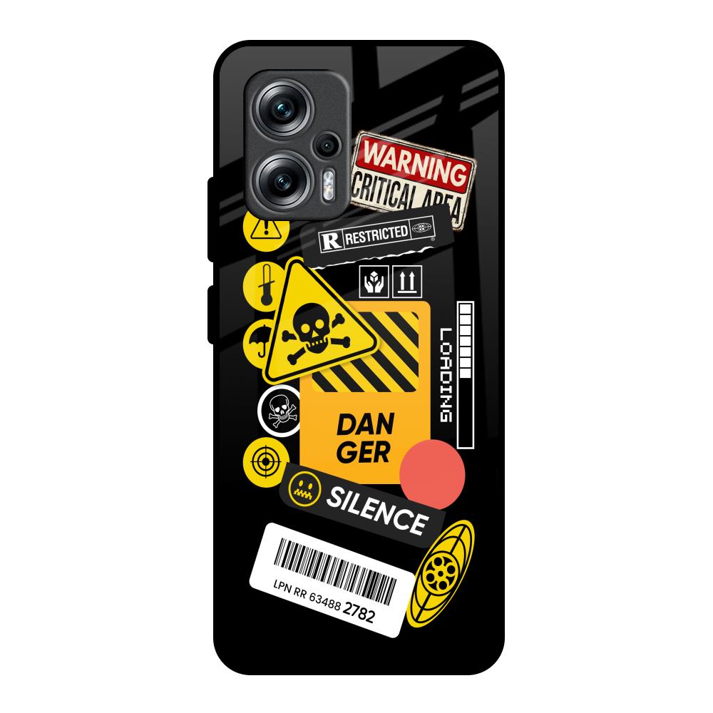 Danger Signs Glass Case for Redmi K50i 5G