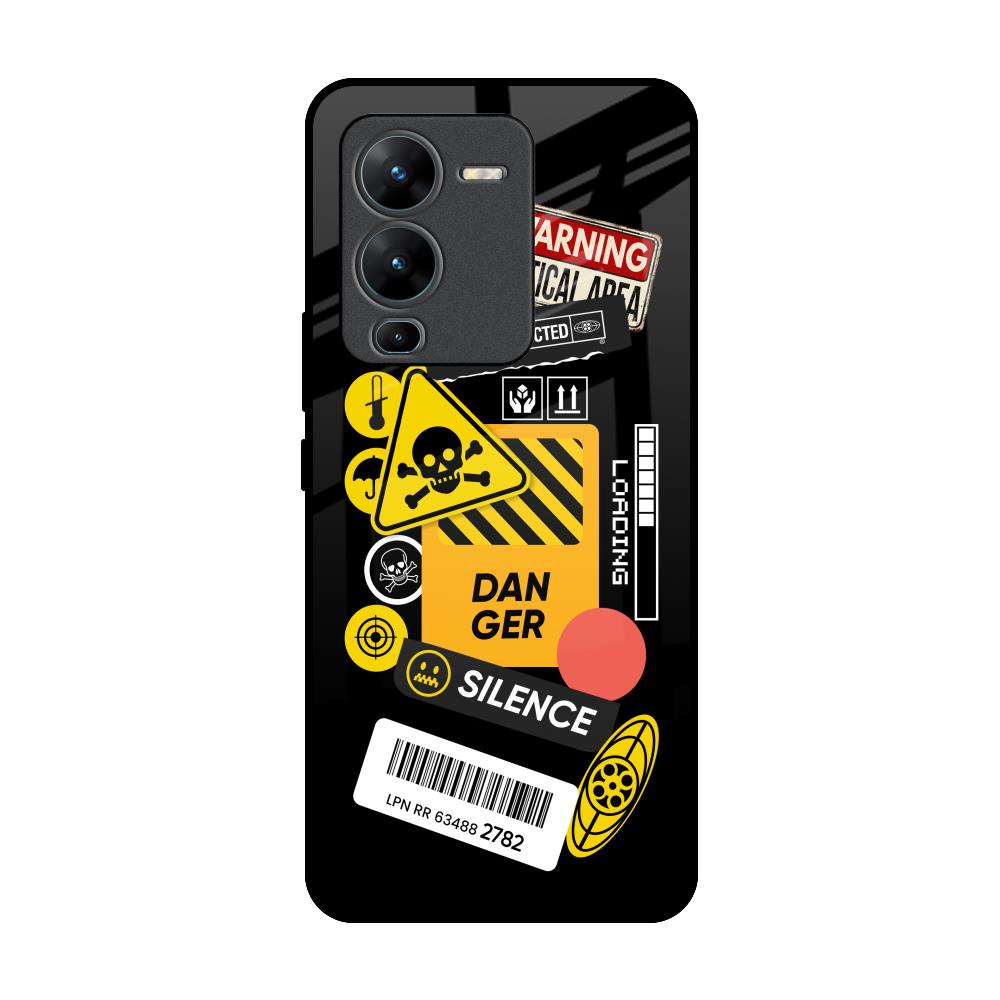 Danger Signs Glass Case for Vivo V25 Pro