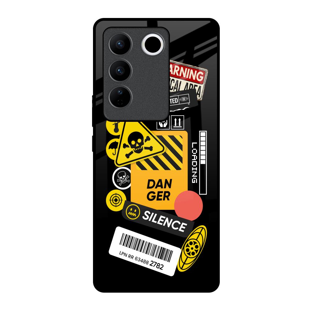 Danger Signs Glass Case for Vivo V27 Pro 5G