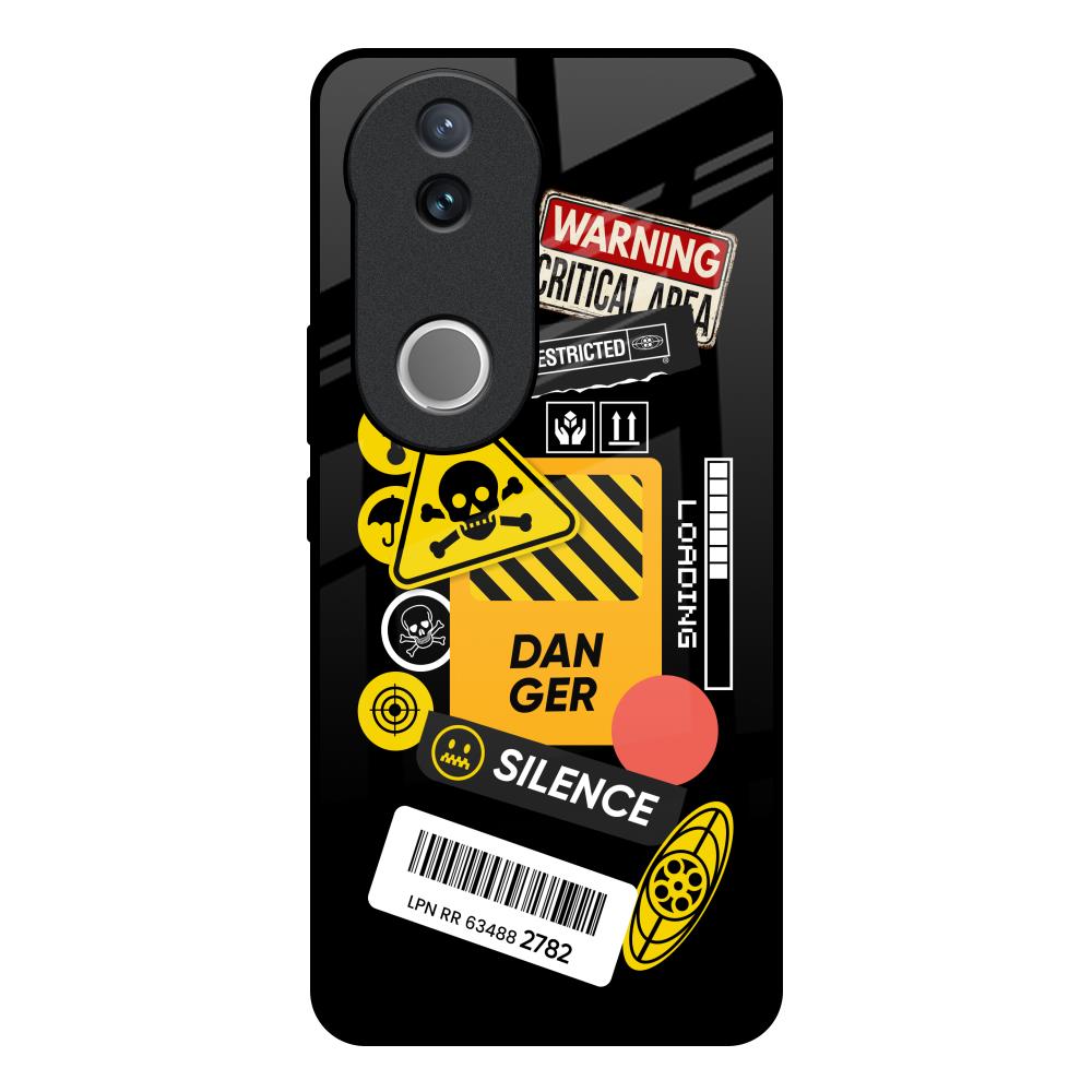 Danger Signs Glass Case for Vivo V50 5G