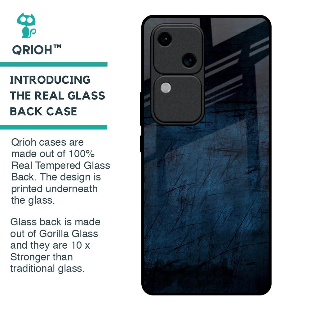 Dark Blue Grunge Glass Case for Vivo V30 5G