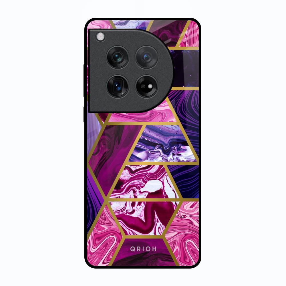Electroplated Geometric Marble Glass Case for Oneplus 12
