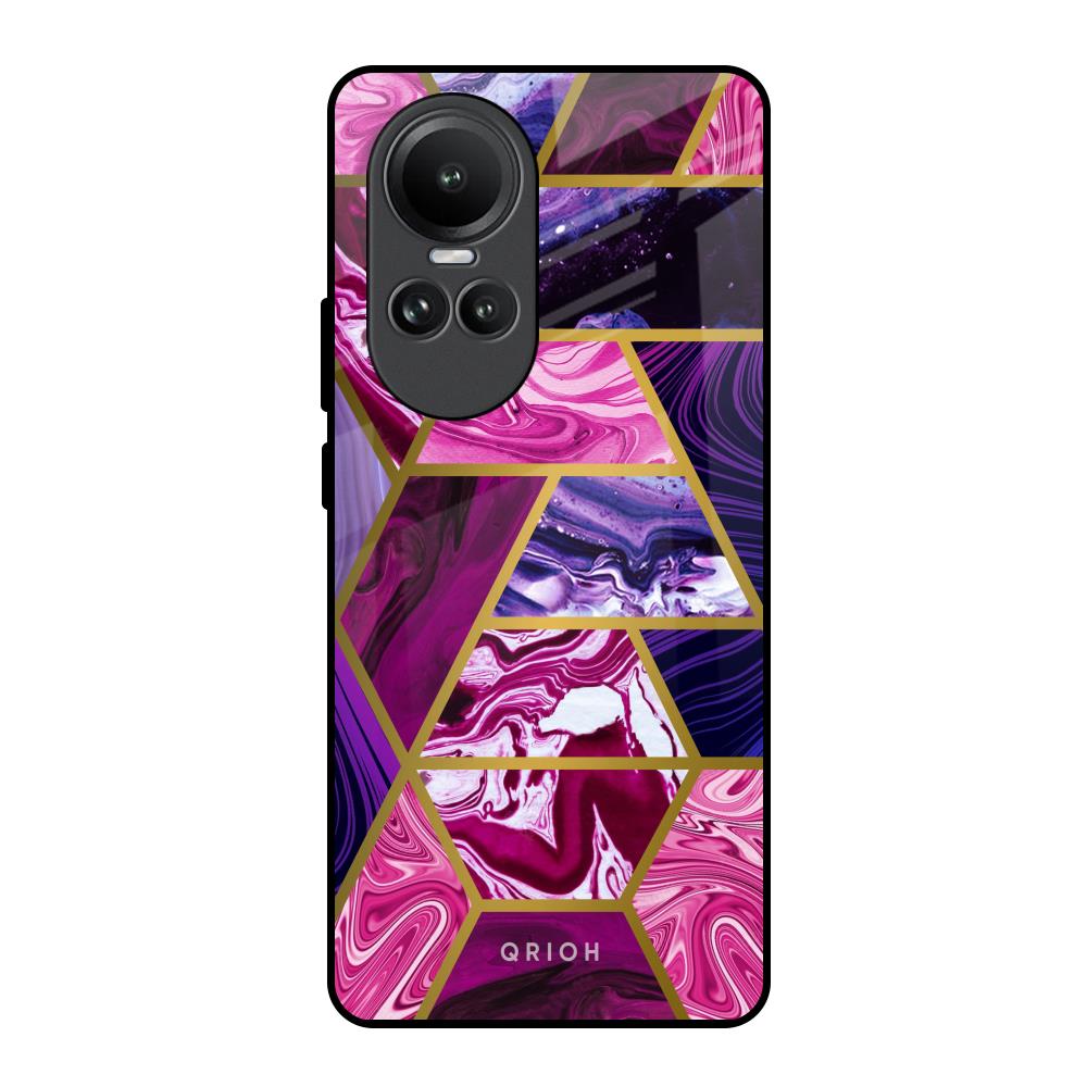 Electroplated Geometric Marble Glass Case for Oppo Reno10 5G