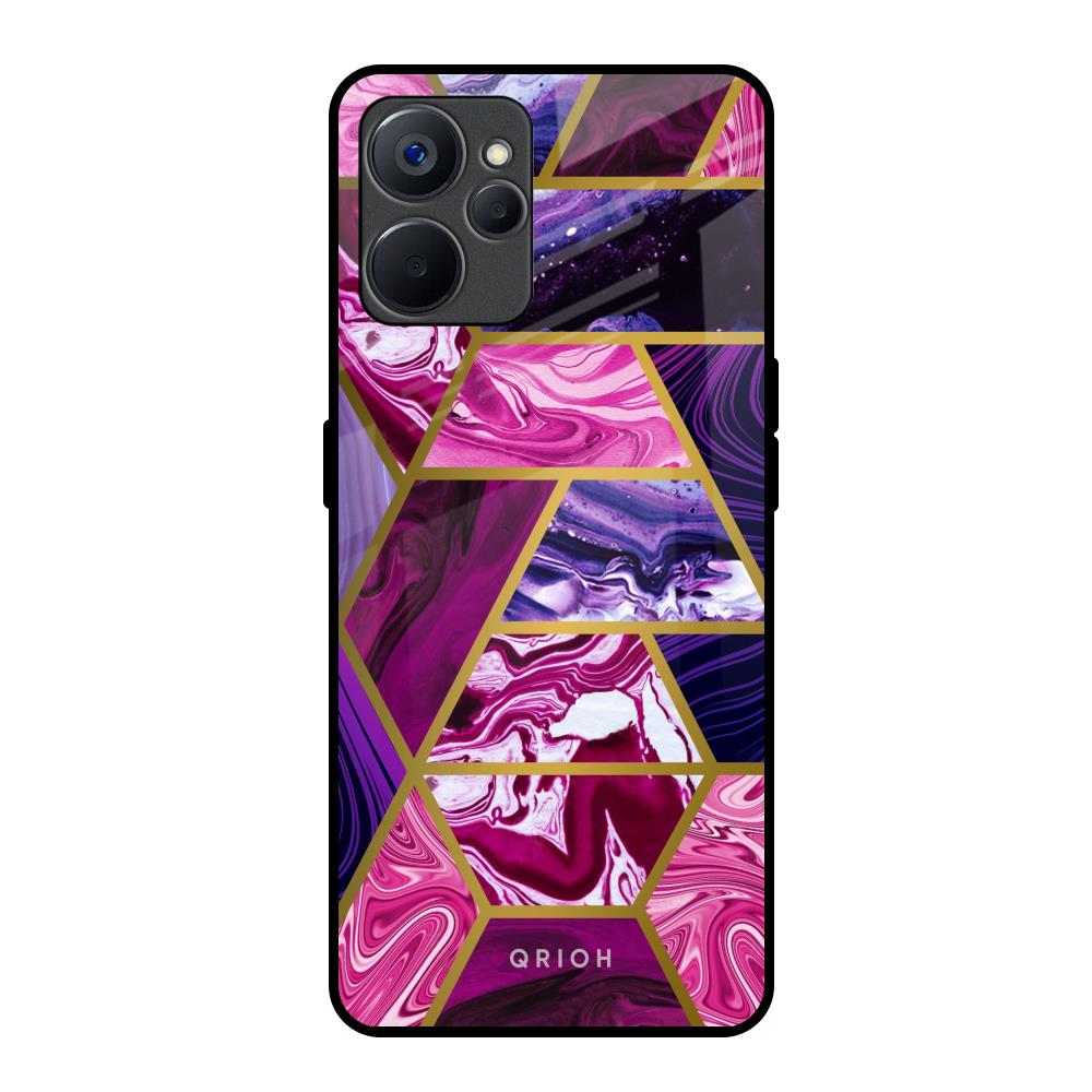 Electroplated Geometric Marble Glass Case for Realme 9i 5G