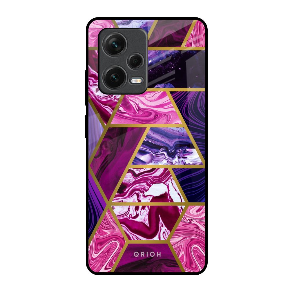 Electroplated Geometric Marble Glass Case for Redmi Note 12 Pro 5G