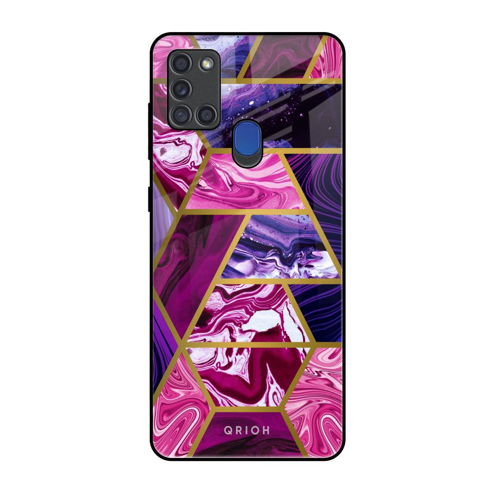 Electroplated Geometric Marble Glass Case for Samsung A21s