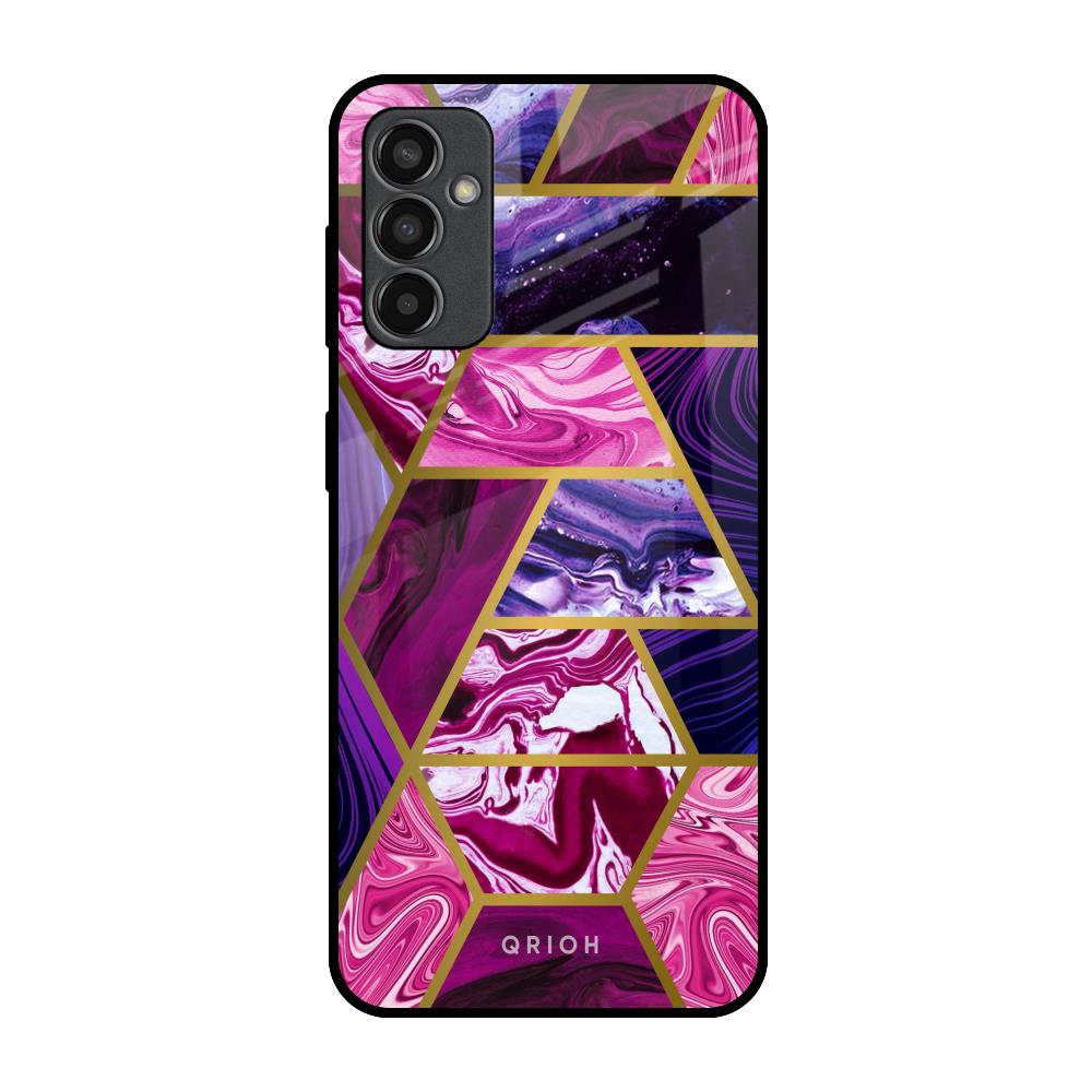Electroplated Geometric Marble Glass Case for Samsung Galaxy M13