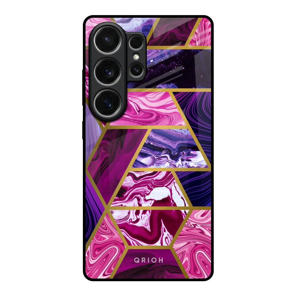 Electroplated Geometric Marble Glass Case for Samsung Galaxy S26 Ultra 5G